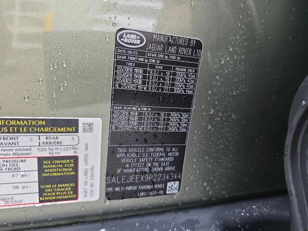 1PRICE-The Right Price OUR PRE-OWNED ADVANTAGE We constantly research the market to ensure you always get the right price. No uncomfortable negotiations, just one simple up-front price. This Land Rover includes: EBONY, GRAINED LEATHER SEAT TRIM Cloth Seats Leather Seats PREMIUM INTERIOR PROTECTION Floor Mats FOG LIGHTS Fog Lamps BLACK EXTERIOR PACK PANGEA GREEN METALLIC AIR SUSPENSION PACK Air Suspension Active Suspension Headlights-Auto-Leveling 20 FULL-SIZE SPARE WHEEL Conventional Spare Tire HEATED REAR SEATS W/CENTER ARMREST Heated Rear Seat(s) Pass-Through Rear Seat WHEELS: 20 GLOSS BLACK FINISH STYLE 6011 Tires - Front All-Season Tires - Front Performance Aluminum Wheels Tires - Rear Performance Tires - Rear All-Season OPENING PANORAMIC SUNROOF Panoramic Roof Generic Sun/Moonroof Sun/Moonroof BLACK WHEEL PROTECTION PACK Wheel Locks FAMILY COMFORT PACK Multi-Zone A/C 3rd Row Seat A/C Climate Control Rear A/C Pass-Through Rear Seat FIXED SIDE STEPS (PIO) Running Boards/Side Steps *Note - For third party subscriptions or services, please contact the dealer for more information.* We at Jaguar Land Rover White Plains are very meticulous. This hand-selected Certified Pre-Owned vehicle has surpassed our own standards and requirements. This Land Rover Defender S is an incredibly versatile vehicle that is a must have for any family. Enhanced performance, a refined interior and exceptional fuel economy are just a few of the things you'll enjoy about this all-wheel drive vehicle. This 2023 Land Rover Defender has such low mileage it has been parked more than driven. Added comfort with contemporary style is the leather interior to heighten the quality and craftsmanship for the Land Rover Defender S. Additional Protections applied to the Vehicle ****APPEARANCE PROTECTION $749. (EXTERIOR & INTERIOR SEALANTS) ***** ****DENT PROTECTION $749. (DENT /DING REPAIR) **** **VEHICLES ARE LOCATED AT 295 EAST MAIN STREET ELMSFORD NY 10523** HOURS MON-THURS 8:30AM-8:00PM FRIDAY 8:30AM-7:00PM SATURDAY 8:30AM-6:00PM